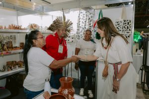 Presente no evento, a primeira-dama do estado, Mônica Riedel, visitou a Feira Mãos que Criam e falou sobre a importância de o Governo do Estado de apoiar os artesãos com a Semana do Artesão. “Os artesãos são a porta de saída, digamos assim, do nome do Estado. As pessoas vêm para cá e aí através da artesanato elas levam um pouquinho de Mato Grosso do Sul. Então o governo de Mato Grosso do Sul apoiar faz muito sentido, porque é o nome do Estado que está sendo levado. A cultura, os valores de um povo que está sendo levado para ser mostrado em outro local. Então isso é muito importante e por isso que eu acho que o artesanato a gente tem que realmente incentivar o que a gente puder para continuar com certeza valorizando o que é nosso”.