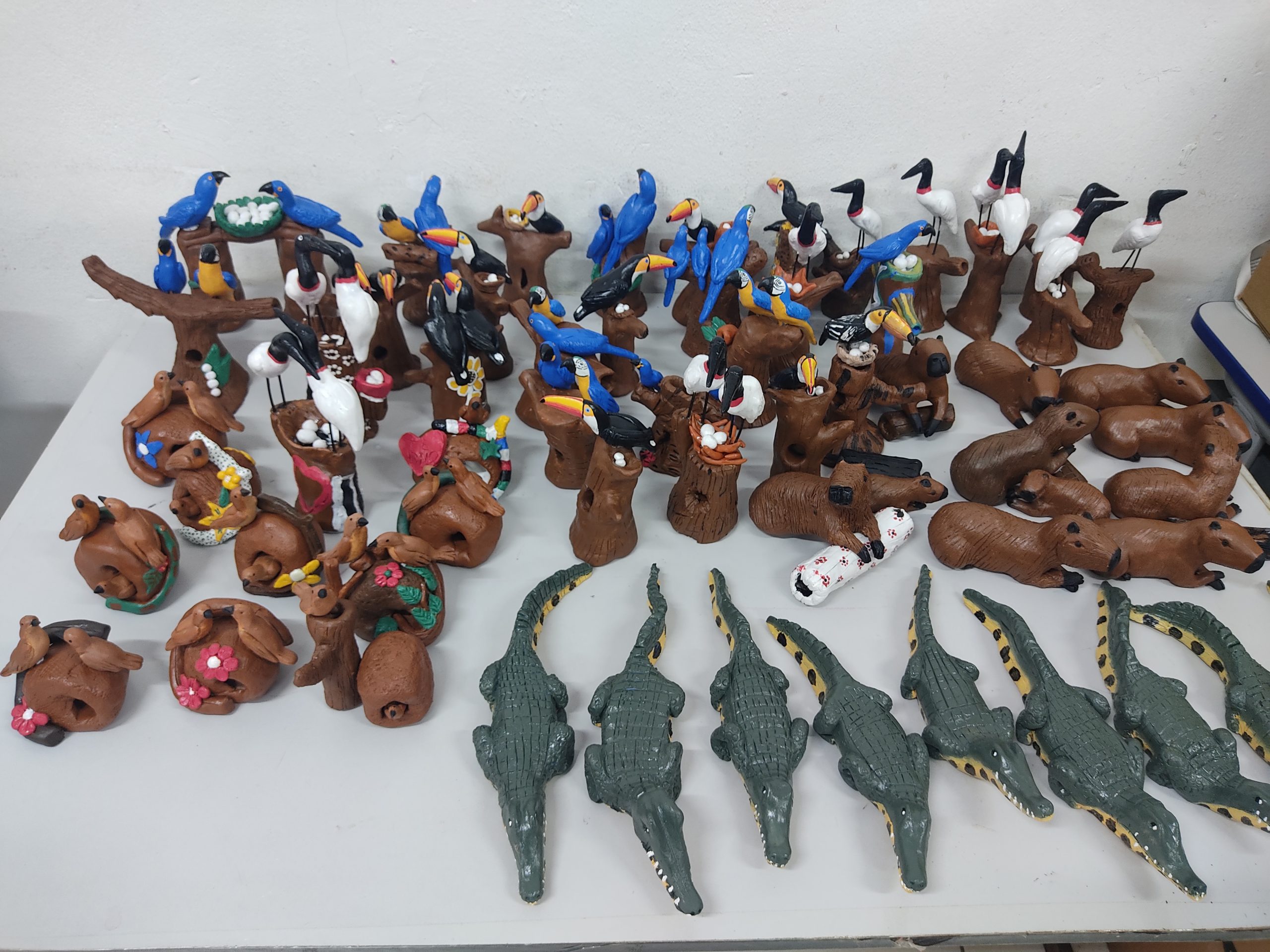 Com técnicas ensinadas durante o curso, e muita inspiração, a matéria-prima tomou forma de araras, jacarés, onças pintadas, entre outros animais que representam a fauna pantaneira e têm importante mercado consumidor, principalmente por conta do turismo.