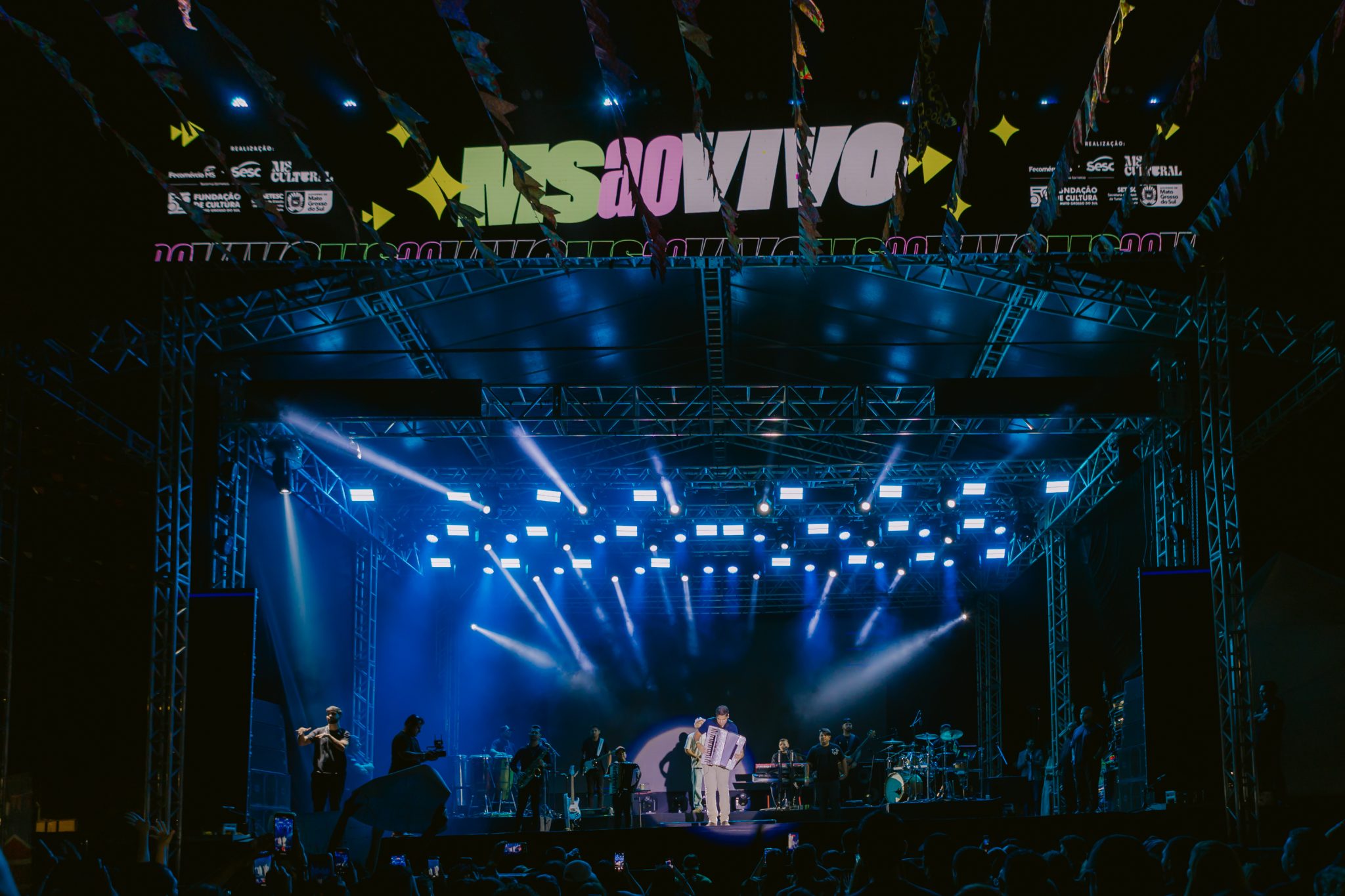 Realizado pelo Governo do Estado de Mato Grosso do Sul, por meio da Setesc e da Fundação de Cultura, o MS ao Vivo contou em 2025 com parceria do Sesc-MS. Ao longo de três anos, o projeto consolidou um circuito contínuo de grandes shows gratuitos, estimulando a cena cultural local e reforçando o Parque das Nações Indígenas como um dos principais pontos de encontro da população.